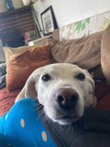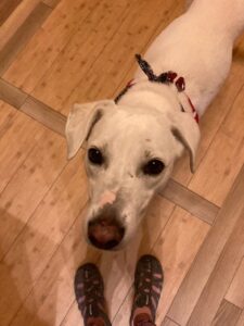She was likely not treated well before she was rescued, and she didn’t see too many new people in her foster home. She prefers a bit of a slow approach when meeting, and warms up quickly-even quicker when treats are being tossed her way. We have been very impressed with how quickly she adapted and began to trust.