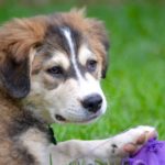 Although their mama is a medium sized dog, we think that Mapache will be a big dog. She will also have long hair. Mapache is about 10 weeks old and is available for adoption.