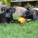 Mateo is a gorgeous black pup with tan leggings and will likely be a mid-sized dog (based on the size of his mother). He is a calm, sweet puppy. He is friendly and outgoing with people and playful and appropriate with all the dogs at the rescue. Mateo has been neutered and is up to date on all his shots.