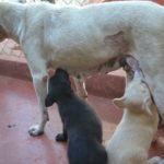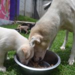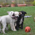 The pups are being carefully socialized to other dogs, puppies, cats, and kids. They are all doing spectacularly well.