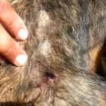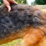 Merlin is a purebred German Shepherd. He is four years old. He is now putting on weight, his skin has healed, and he is gaining strength.
