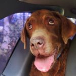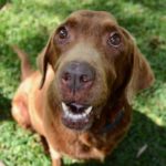 Hazel came to us such a short time ago. In early December, an acquaintance called us to say that she had rescued a “Lab” in terrible condition and needed help. The photos she sent broke our hearts. This poor dog was in such appalling condition… We posted the dog hoping that someone would step up and offer to foster or adopt her. A wonderful family who previously adopted one of our puppies in the Bay Area immediately responded and asked to adopt Hazel.