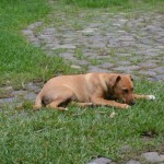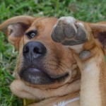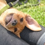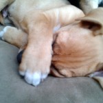 Milo came to us as one of eight tiny, month old puppies we took in and hand raised. The pups were left at just two weeks of age in a cardboard box beside their mom who was tied to the door of a local veterinary clinic. The mom slipped away and was not seen again, and the clinic staff raised the fifteen-day old puppies to one month of age and gave them to us. This litter of pups was lovely. We had a terrific time making sure they were exposed to wonderful children, other nice dogs, and training them. They had an amazing puppy-hood, and when they were about three months old seven of the eight were adopted by wonderful families in the Bay Area and on Bainbridge Island.