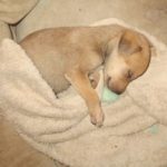 She is a survivor like few other puppies we have met. We don’t know what breed mix she is, but it seems like she will be a small dog. She currently weighs about 13 lbs.