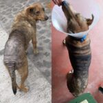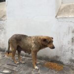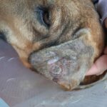 Ouma is an older female farm dog. She’s wandered south of Antigua for years, having litter after litter of semi-feral and undesired puppies. She was quite feral herself but team member Francesca managed to win her trust feeding her when the pandemic began and alternate food sources dried up. Ouma had very bad skin, and was constantly scratching.
