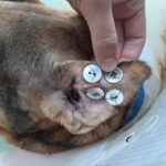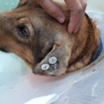 We brought her in as a TNR (trap, neuter, release) dog, and planned to release her post-spay. We vaccinated her and treated her with Bravecto. She had an ear infection and aural hematoma in one eara from shaking her head constantly. So we treated the infection and had the hematoma surgically repaired. By the time her ear, spay, and skin had healed, several months had passed. Then, she developed an aural hematoma in her second ear.