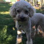 Oscar is a young male poodle. He is probably about 2 years old, and weighs about 12 lbs. He is cream/apricot in color, and is healthy and fit.