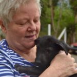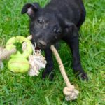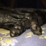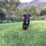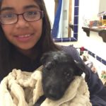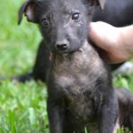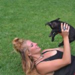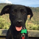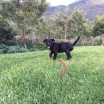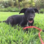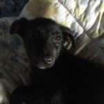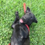 Pebbles can be very goofy. She loves to play. Pebbles is very smart. She can sit, lie down, target, almost shake and she has been walking on a leash for a long time. She loves her walks. Pebbles learns quickly and is very food motivated, she is also super social. She loves nothing more than to wake up the girls by jumping in bed with them. Pebbles is hard to resist. When she came to us she was recovering from mange. So she was bathed and massaged with coconut oil daily. Although she didn’t love the bath she was tolerant of that and loved her massages. Very quickly her fur came back and it is black as night. Her eyes are too. She is a beauty, inside and out.