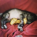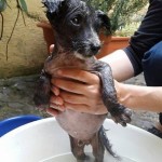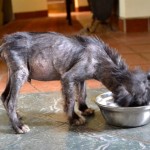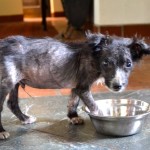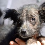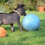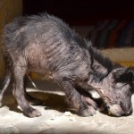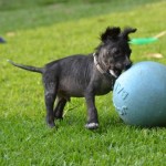 This little pipsqueak was found on the roadside by a good samaritan. He was covered in mange, almost hairless, and full of worms. But Pip is a tough little puppy. He is recovering very nicely from his mange and his hair is growing in. He is growing and getting stronger now that his parasite load is gone. He has survived rickets and his legs are getting strong.