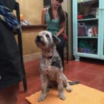 Polly is about a year or a year and a half old. She is an unknown mix of unknown parentage. We suspect there is some Doddle in her, and maybe some terrier in her as well Her coat is curly and soft, and she loves being brushed.