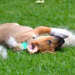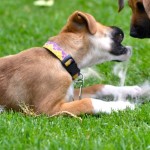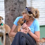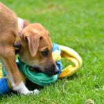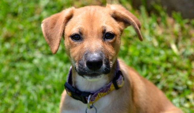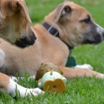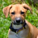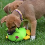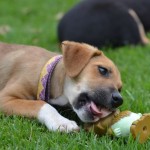 Reba and her three sisters were brought to us by a good samaritan who found them in an abandoned field. She had the mother spayed, and she is being cared for by a group of neighbors. The puppies needed proper homes before something happened to them. We brought them in on April 13, 2015, and the pups lived for almost two weeks amongst the cats in their areas as we were full up with puppies in the dog area and couldn’t risk mixing in unvaccinated puppies with our partially vaccinated pups. This group of four are supremely cat friendly because of this early experience! Once the older pups were placed, the newbies moved up to Dog Town to begin learning the ropes with their own species.
