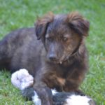 Ria and her sister are the smallest of the 6 puppies, and she has similar beautiful black/brown brindle markings to several of her siblings.