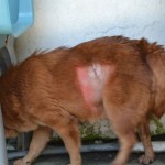 Rosita was a frequent visitor to the feeding station we operate in front of the Revue office in town. We watched her go through several heat cycles, trying to take care of an unknown number of puppies. On her last heat, Terry managed to lure her into the office and trap her. She was spayed by Dr. Calderon, but while he was operating he noticed that Rosita had a huge hernia on her flank-clearly from a deep, hard blow of some sort.