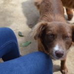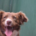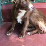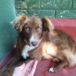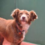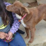 During her spay, the vet discovered that Sakura was pregnant. She is now spayed and recovered and has settled in to the group at the center very well. She is a very sweet, affectionate dog, probably about a year old. She is beautiful, which cafe-au-lait colored medium length fur and perfect white teeth. She is full grown and weighs about 25 lbs.