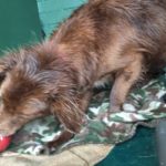 Sakura was thrown over our wall from a passing vehicle during a heavy rainstorm. We suppose that whoever did this was trying to dump her in a place that would take care of her. We suppose. Luckily for this little pup, she happened to land on the roof of one of our runs. Had she landed in the open area, the other dogs would likely have attacked her and injured or killed her. Groups of dogs don’t take kindly to new dogs falling from the sky into their midst.