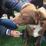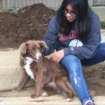 Sakura loves the people and kids who she meets at the rescue, and gets along with all the dogs. She plays well with all the dogs, and loves to play with toys. However, she is fearful and very reactive to strangers (especially men). She can be fearful on the street when it is busy or loud. She is doing very well with her basic training and is crate trained. She was very reactive on leash, but Phomolo’s patient training has worked wonders and she now walks past bikes, joggers, and other dogs calmly .