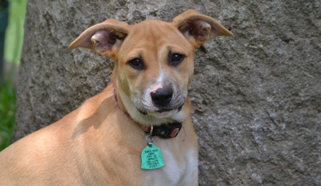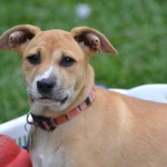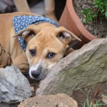 Sandy is one of eight tiny, month old puppies we took in and hand raised. The pups were left in a cardboard box beside their mom, tied to the door of a local veterinary clinic. The mom slipped away and was not seen again, and the clinic staff raised the fifteen-day old puppies to one month of age and gave them to us. This litter of pups was lovely. We had a terrific time making sure they were exposed to wonderful children, other nice dogs, and training them. They had an amazing puppy-hood, and when they were about three months old they were adopted by families in the Bay Area. Sandy’s sister Sadie caught the eye of a family on Bainbridge Island who thought they had never seen such a cute, well-behaved puppy. They contacted us and adopted Sandy (now Stella), who took a second plane ride to fly from San Francisco, and a ferry to the island. Stella lives with a doggie brother named Jack who adores her, and a lovely human family who think that she is the best puppy ever.
