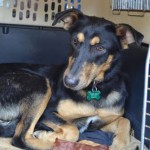 Sissy is a gorgeous black and tan hound mix. She was rescued from an owner who was beating her to death by friends Gerson and Tessa.