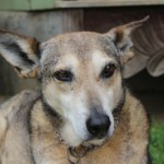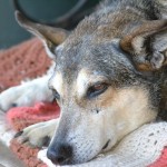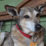 Suki has some urinary incontinence which is well managed with hormone therapy, and of course she takes daily Rimadyl for her stiff old hips. She loves her home and her pack, and will live out her remaining years as a Sanctuary dog.
