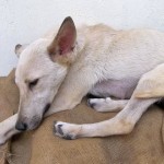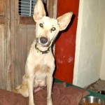When we first saw her in late December of 2011 Suzanna was a skeletally thin blonde German Shepherd mix who was desperately scrounging for anything edible. She had recently given birth, though there was no sign of her babies. She was literally skin, bones, and swollen teats. Here ears appeared completely outsized for the size of her bony head and starved body. We estimated that she was a couple of years old when we found her, possibly three.
