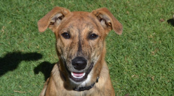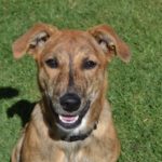 Tigra is a stunning brindle pup with absolutely gorgeous markings and eyes that could melt stone. She is sleek with a short coat and  a long, lean build. She is sweet, friendly and loves people and dogs. Tigra has lived with a cat in her foster home and does fine with it.