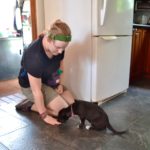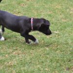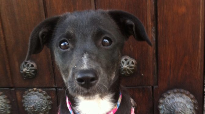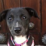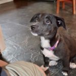 This little nubbin of a puppy was rescued by Francesca on a road trip with her husband. She was teeny-tiny and full of parasites. Francesca has fostered her in her home, and Tomasa is a sweet, friendly pup, good with dogs and great with people.