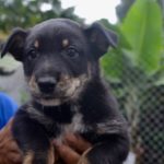 This is one of six puppies who were rescued along with their mother from Escuintla. The mother was very ill and could not swallow any food. Rescuer Francesca took her to her veterinarian and under sedation he found that she had a splintered chicken bone caught in her throat which prevented her from swallowing. Subsequently, they discovered that she has difficulty chewing due to an old, poorly healed fractured jaw.