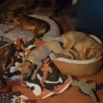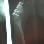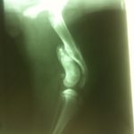 She had a pronounced limp and on performing x-rays our veterinarian found that the femur has grown a long spike that had extended and was now impinging on the knee cap in the attempt to ‘close the space’. Vale was in a great deal of pain from this and the vet performed a surgery to cut the point off, re-break the bone, and plate the fracture so it will heal (and hopefully grow) properly. The plate may have to be removed in about three months, so Vale is not really available for adoption until we know if the plate will stay or not.
