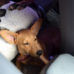 Sweet little Vanilla was rescued dodging traffic in the highway between Antigua and Guatemala city. She was terrified and as it turns out, very, very lucky!