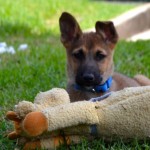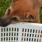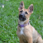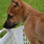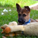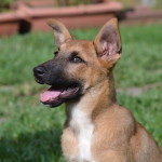 Vin is a darling puppy, friendly, outgoing, playful and smart. He plays well with other dogs and puppies. He is being clicker trained and has already learned many basic behaviors including “sit”, “down”, a hand target, and to walk on a leash. He has a great recall and is learning to sleep in a crate.