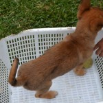 Vin is one of eleven gorgeous puppies who were rescued just before birth by friends Gerson and Tessa. The couple found a mother dog giving birth behind the market in Antigua on July 20, 2015. They couldn’t leave her to have her babies on the street, and took her home. To their unhappy surprise, Mama Kate as they dubbed her proceeded to produce 12 babies! Eleven survived, and so began a long two months caring for mama and a mob of little ones.