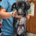 Waldo was found by good friend Linda Conard in front of her condominium at the south side of Antigua. He was almost bald from mange and flea bite allergy, terribly skinny, yet still trying hard to make friends with all the people and dogs he saw. Linda’s neighbor was kicking at him, insisting that the puppy would make the other dogs sick.